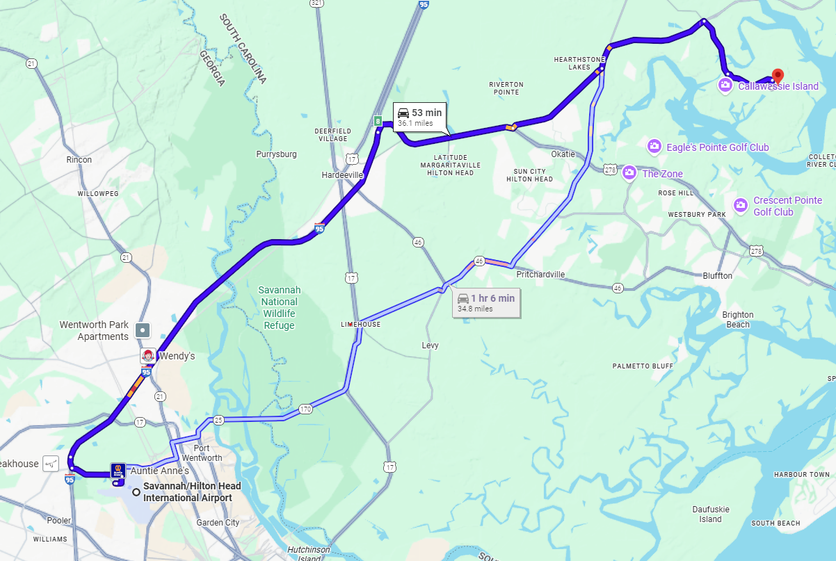 Please note that Spring Island is remote so you’ll need a personal or rental car to get around. Ride-sharing services like Uber and Lyft, as well as taxi options, are limited in the area and not available on Spring Island. For your safety and convenience we will provide transportation to and from the welcome dinner on Friday night and the wedding ceremony and reception on Saturday.